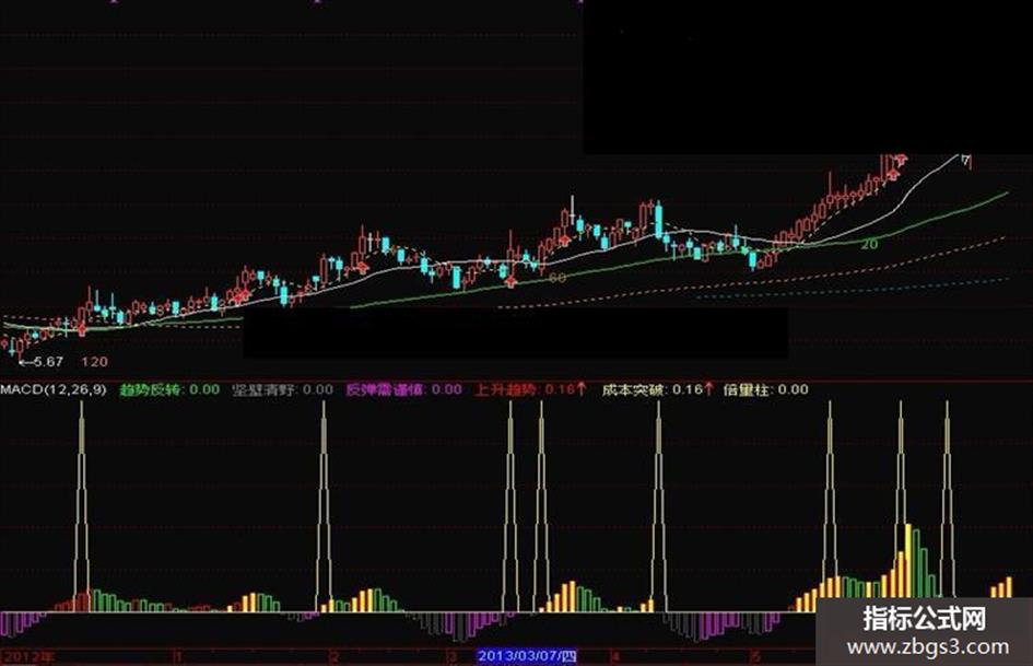 趋势反转:IF(MACD>=0 AND MACD<REF(MACD,1),MACD,0),COLORGREEN,NODRAW;