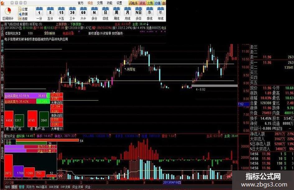 今天 因为是在下班的时候发上来的将军柱主图指标,因时间的关系就发了主图指标,本想明天发副图指标,但因为有同学要求,现特发上来,给有需要的人,资金方面都是改动过的,有不喜欢的请路过