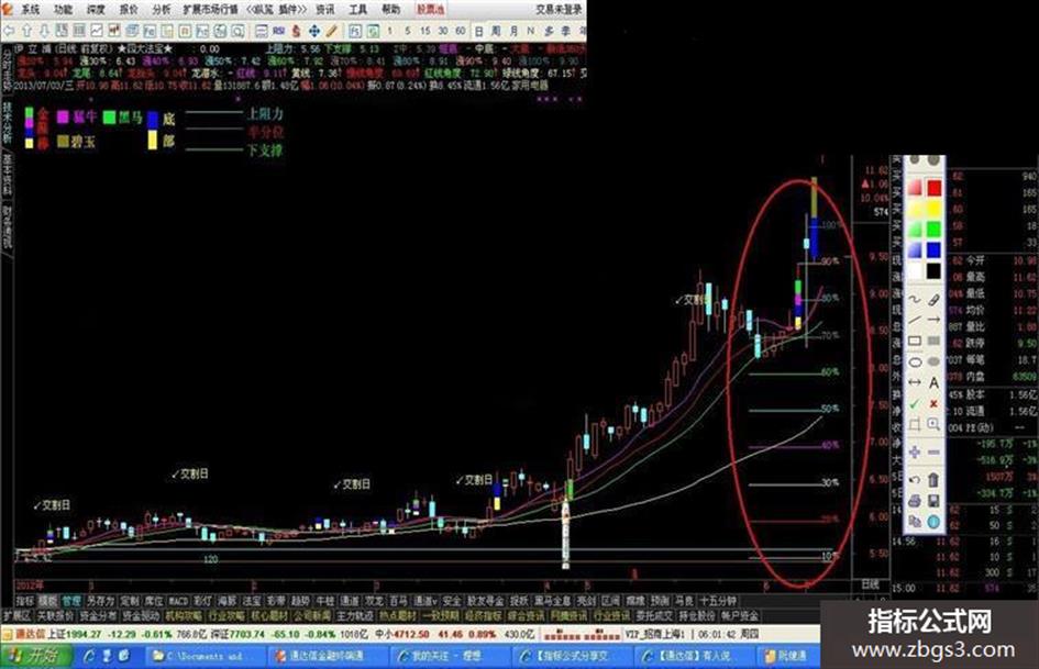 涨40﹪:IF(CURRBARSCOUNT<=10 AND H>REF(C,DAYS)*1.4 ,REF(C,DAYS)*1.4,DRAWNULL),COLORMAGENTA;