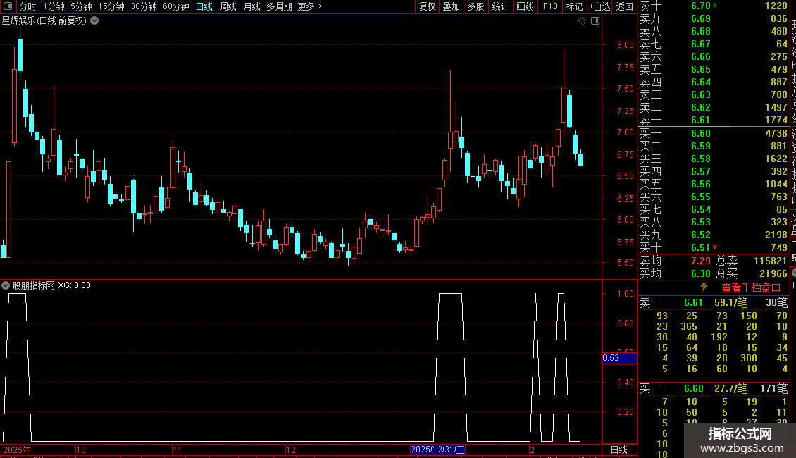 7. 信号整合:最终输出信号`XG`是多个子条件(`XG1`至`XG7`等)的逻辑组合,这些子条件代表了不同强度或侧重点的看涨模式(例如,均线全多头配合量价齐升、强势阳线突破等)。