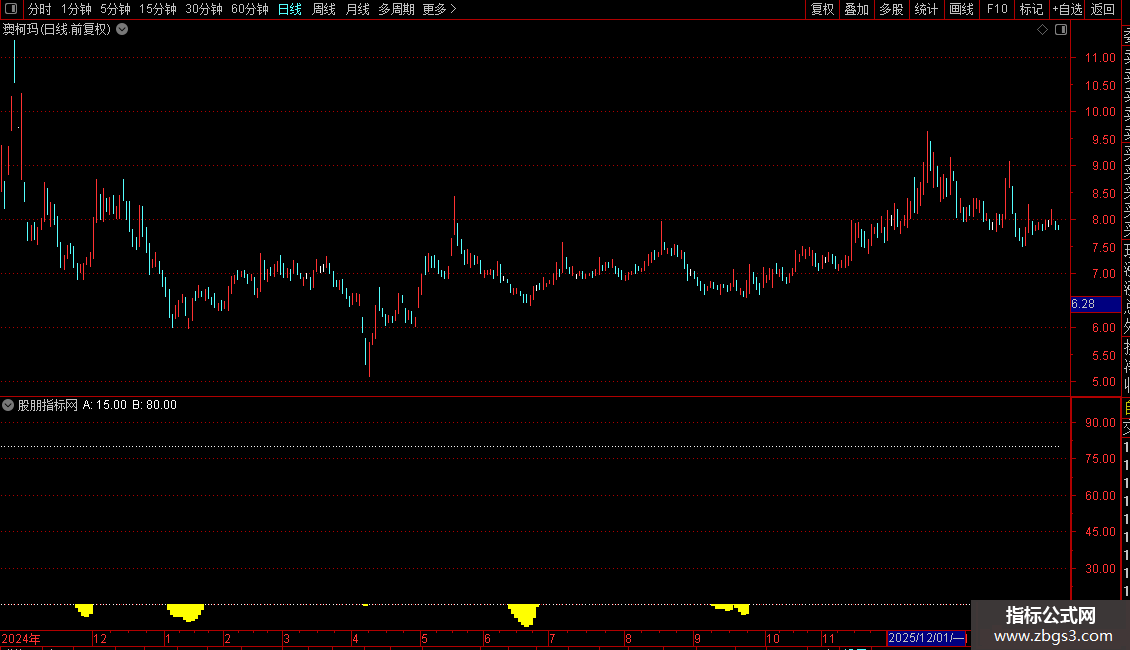 核心功能是识别市场的超卖区域。当三条线同时低于15时,会触发醒目的黄色柱状信号,提示可能的底部区域。指标主要用于辅助判断趋势强度与潜在的转折点。