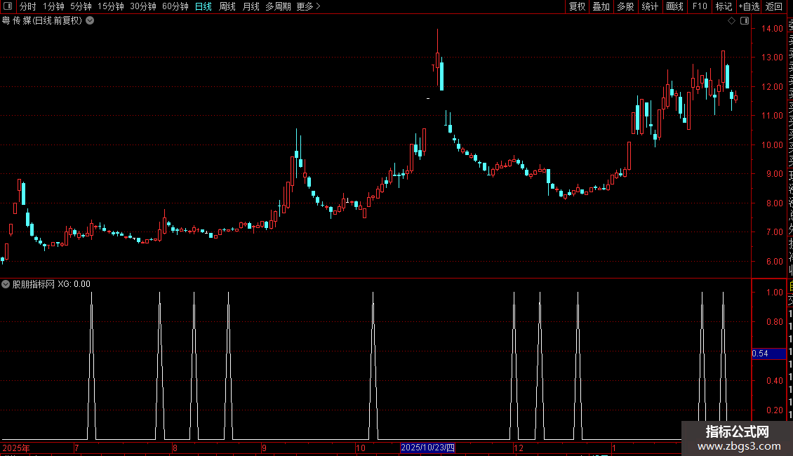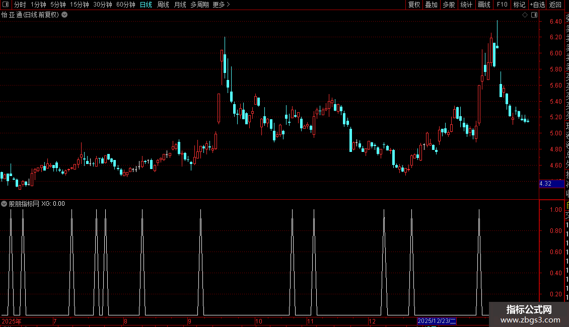 主要功能是识别短期均线差值上穿零轴的转折点,以此作为潜在的买入或趋势启动信号。指标通过条件函数控制线条的显示,使图表更直观。最终输出信号点,便于进行条件选股或预警。