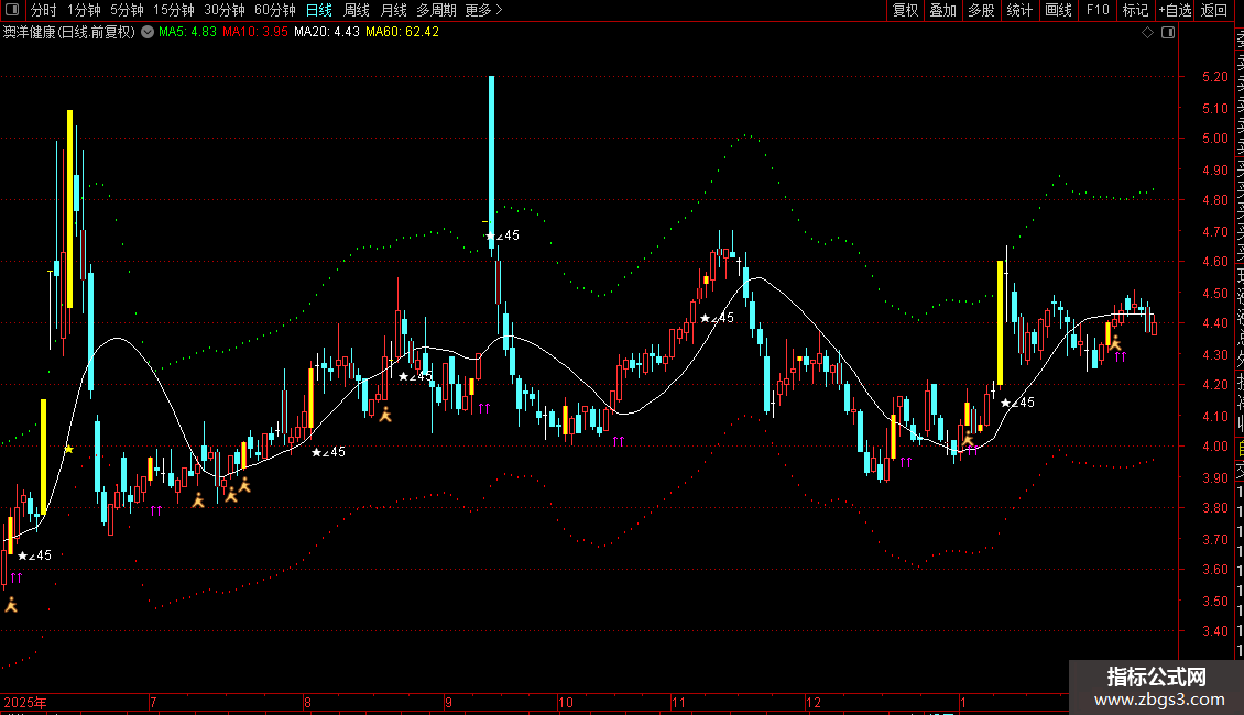 1. 趋势与通道:通过“趋线”和“短趋/中趋”判断价格中期趋势,并绘制“超买”、“超卖”两条动态通道线来提示潜在的压力与支撑位。