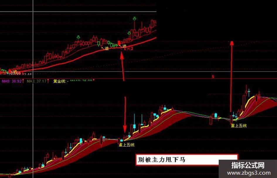 DRAWTEXT(CROSS(C,HJX) AND CROSS(C,MA5) AND CROSS(C,M20),L,'重上五线'),COLORYELLOW;