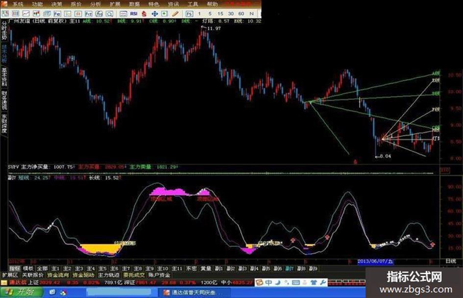 看底:STICKLINE(中线<15,中线,15,6,0),COLORF00FF0;