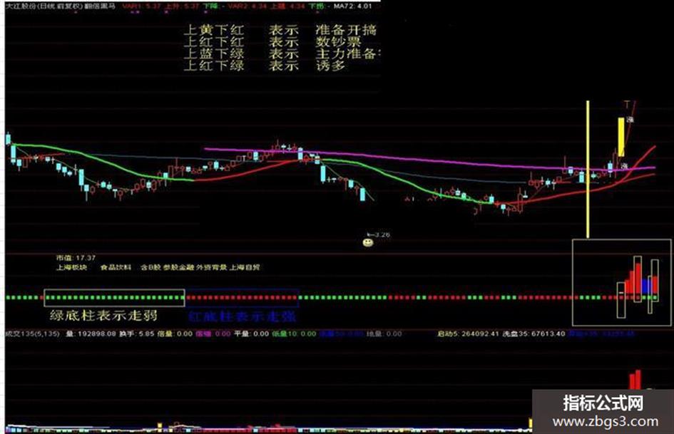 STICKLINE(主力进>5 AND 主力进>REF(主力进,1),5,主力进,2,0),COLORRED;