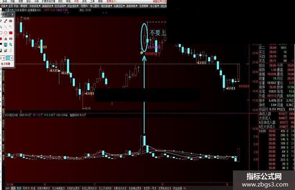 本公式是由回到未来58有感而发,把DDX改成了K线图