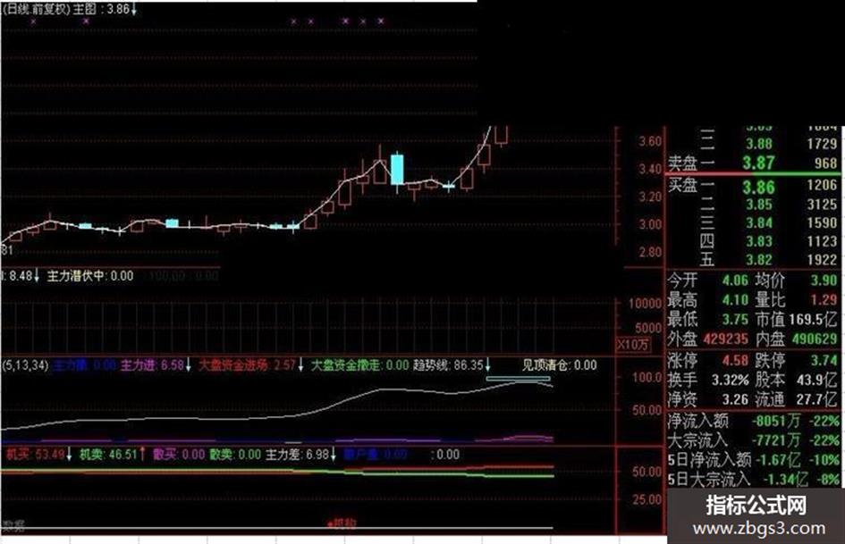 4.通达信主力资金分时指标公式【大盘资金进场、准备现金、见顶清仓】
