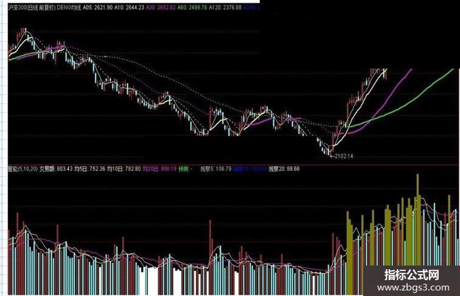 3.量能为。。。那个叫什么颜色。。。则显示量能为放量水平。