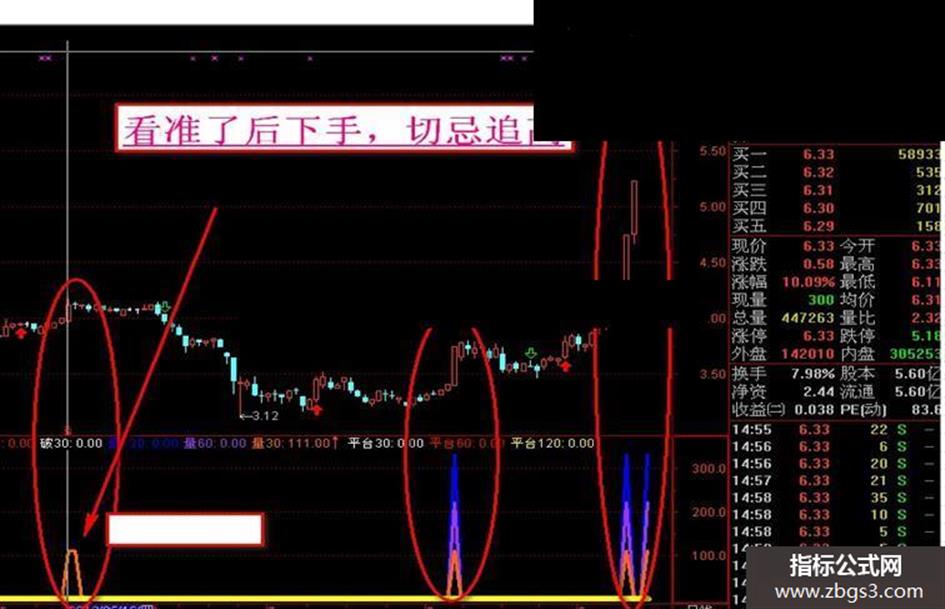 先说明 此指标由于是平台突破风险系数较大,真突破获利不菲,假突破套牢不浅。能者把握,因人而异。