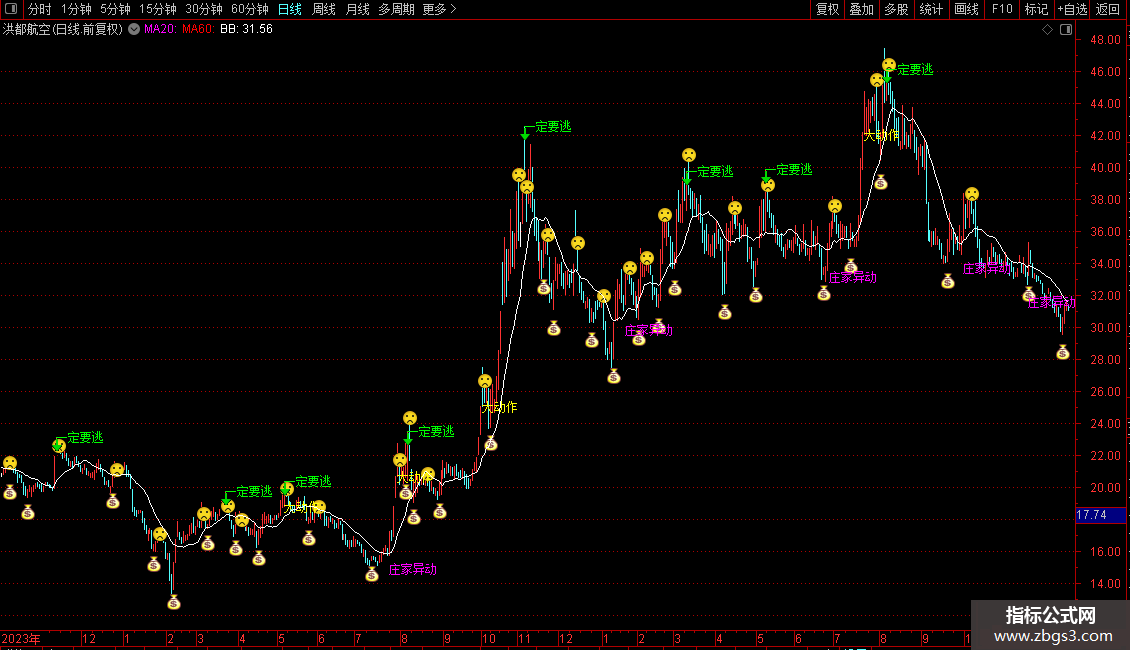 DRAWTEXT(VAR23=35,HIGH*1.00,'一定要逃')COLORGREEN;