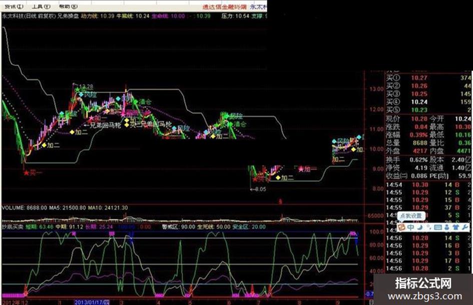 D2:=CROSS(短期,中期)AND 中期<8;