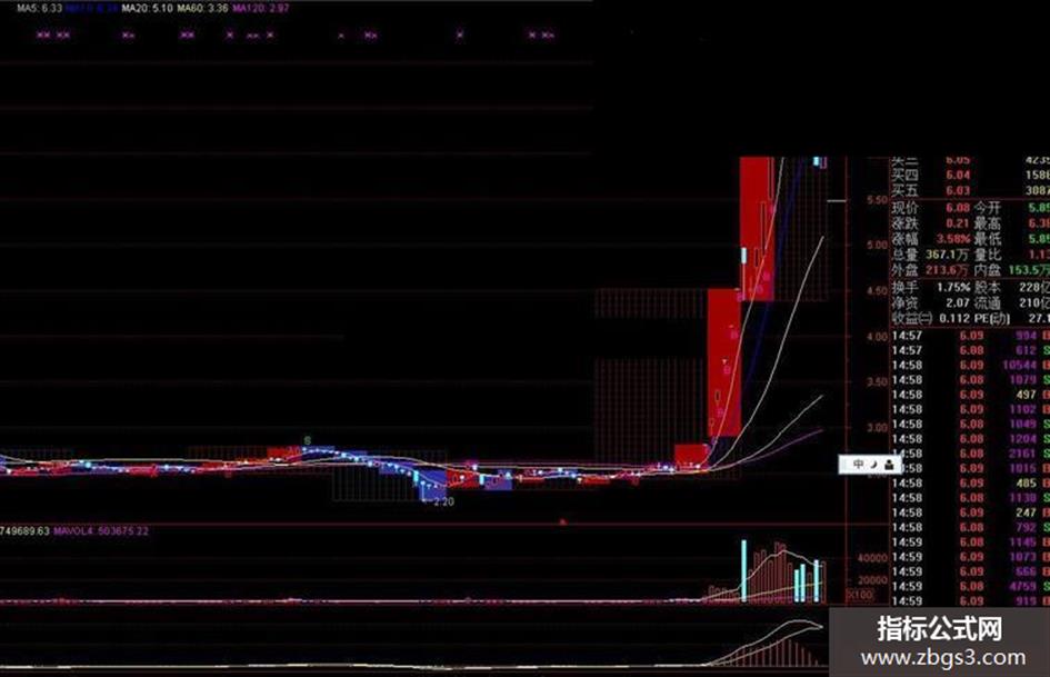DRAWTEXT(T1=1 AND CURRBARSCOUNT=80,AAA-(AAA*0.03),'量能理想,明显走强,中线参与,仓位在2/3左右'),COLORFF00FF ;