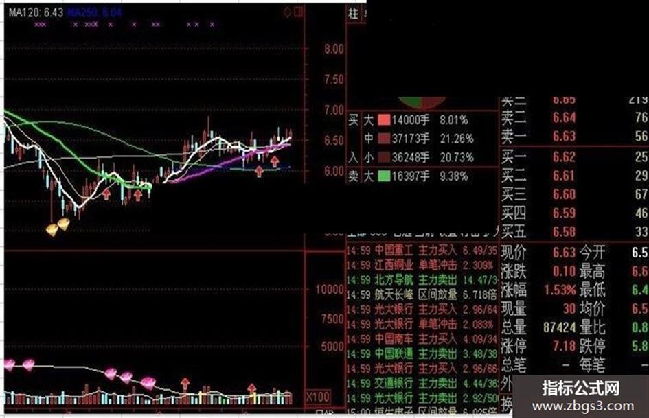 副图中的黄色柱体----表示5日均量上穿60日均量,起提示作用。