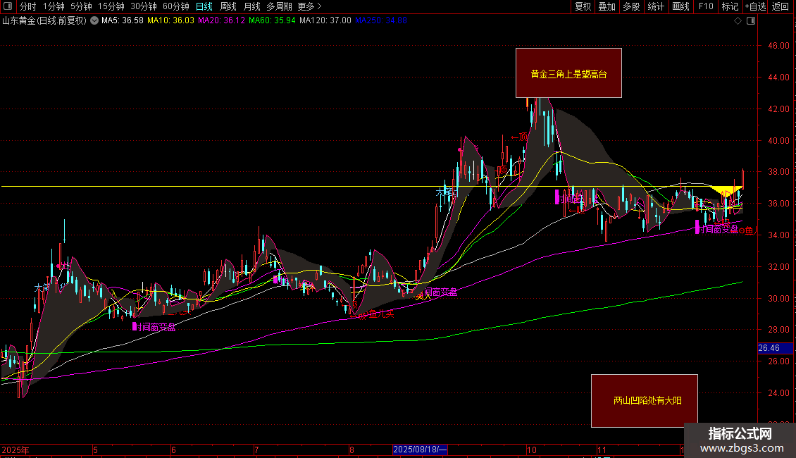 DRAWTEXT_FIX(1,0.70,0.10,0,'黄金三角上是望高台'),COLORYELLOW;