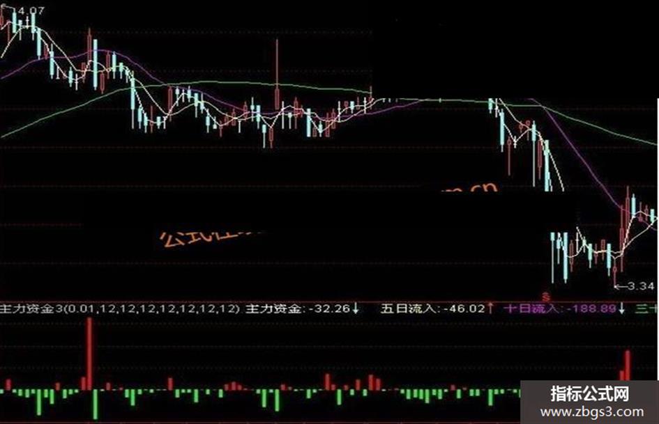主力资金:(LARGEINTRDVOL-LARGEOUTTRDVOL)*DYNAINFO(11)/100,NODRAW; STICKLINE(主力资金>0,0,主力资金,0.8,0),COLORRED; STICKLINE(主力资金<=0,0,主力资金,0.8,0),COLORGREEN; 五日流入:SUM(主力资金,5),NODRAW; 十日流入:SUM(主力资金,10),NODRAW; 三十流入:SUM(主力资金,30),NODRAW;