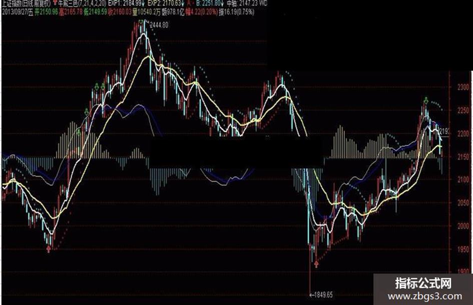 声明:是我论坛里找到的。一直用,效果很好。希望大家喜欢! 判断股票运行趋势强弱的方法,被称为“牛熊三色”,牛熊三色每翻红一色,就可以增加1/3的仓位,三色全翻红的时候基本可以满仓。这三色分别是:MACD指标,DIFF金叉DEA,即MACD出现红柱的时候即为翻红;SAR指标,股价重新回到SRA指标以上,SAR转向到股价之下运行即为翻红;EXPMA指标,7号操盘线(参数7)金叉2号操盘线(参数21)即为翻红。 类型为主图