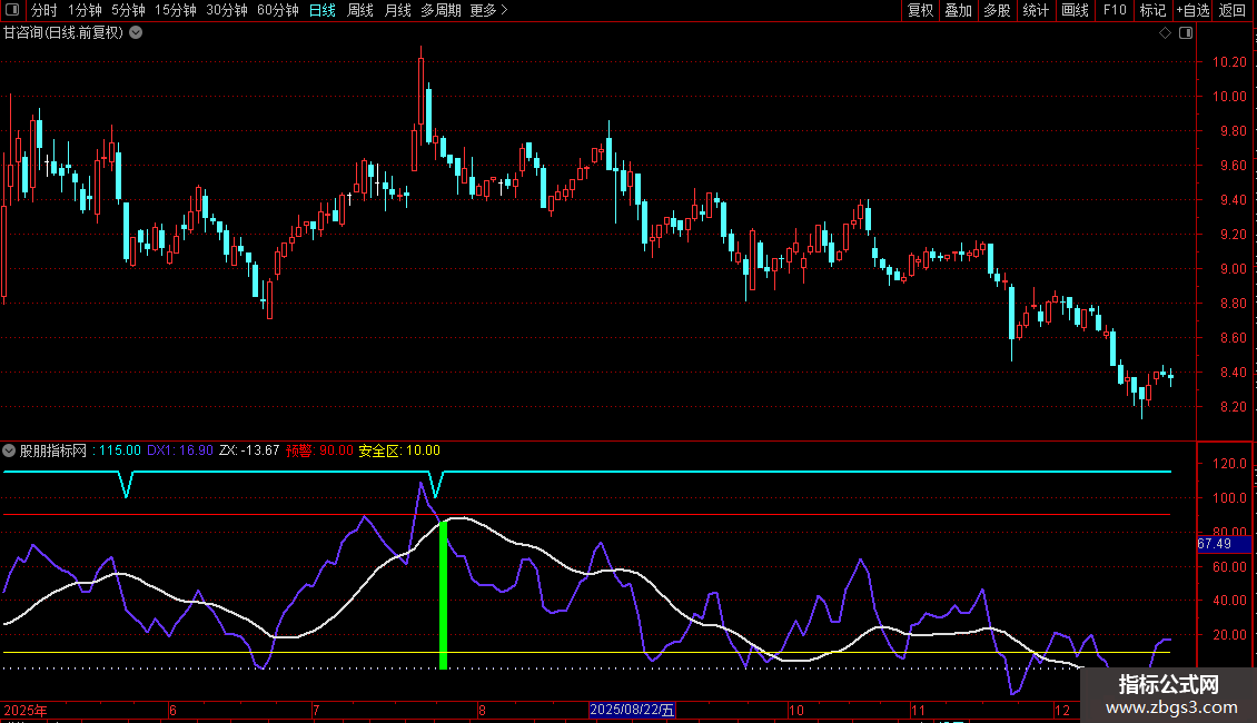 DX2:=EMA(DX1,12),COLOR889900,LINETHICK2;
