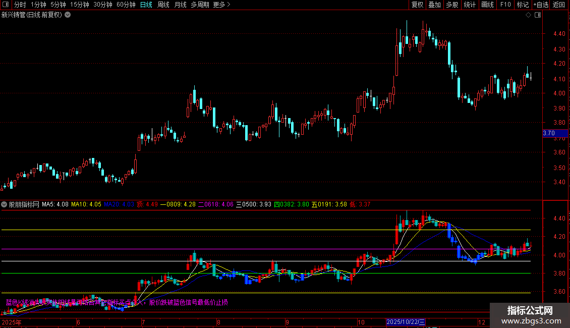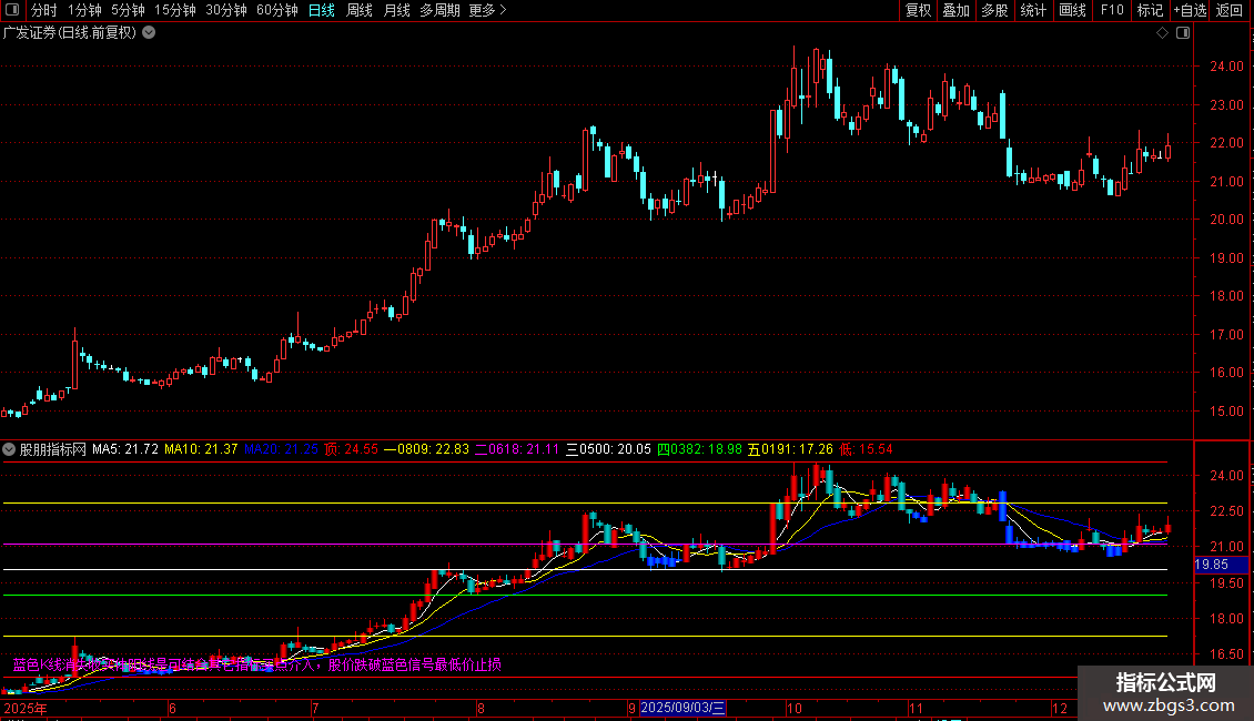 输出MA20:收盘价的M3日简单移动平均,画蓝色