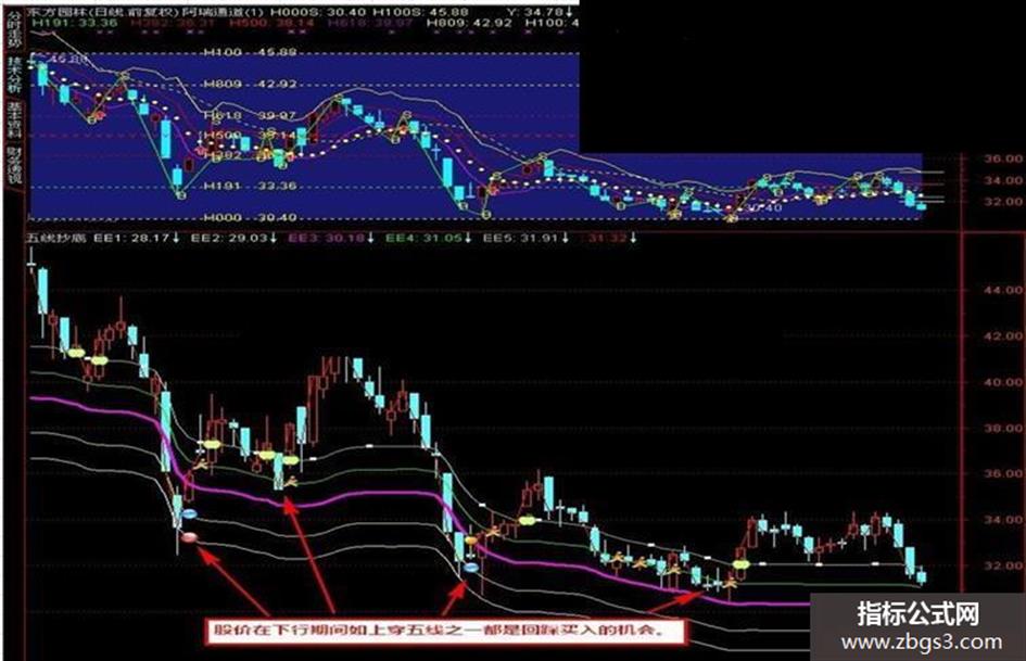 股价在下行期间如上穿五线之一都是回踩买入的机会。看图即会。