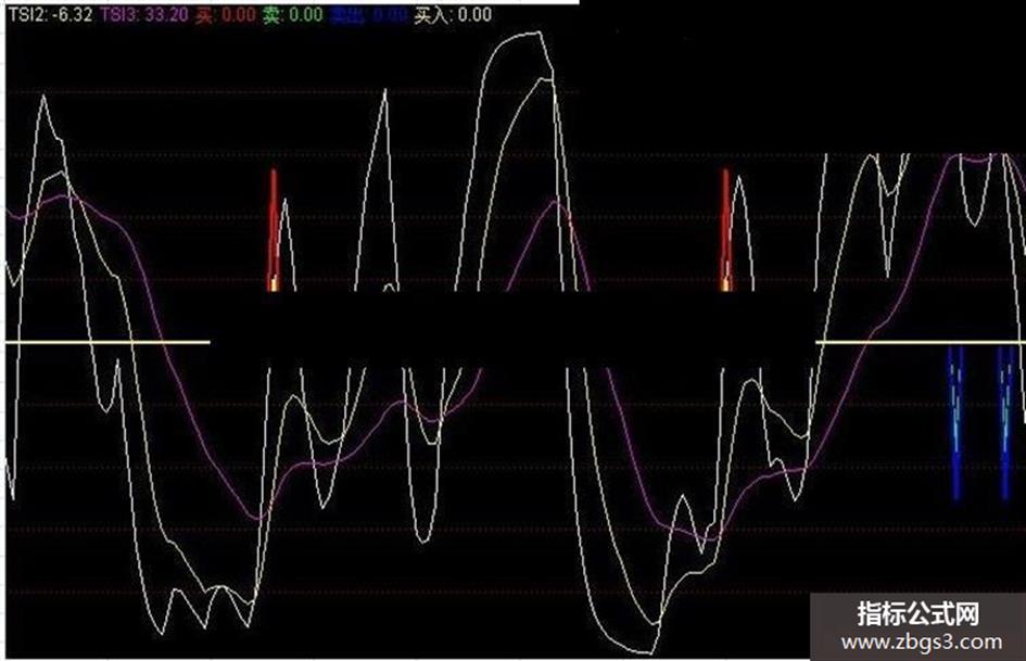 卖出:IF(CROSS(TSI2,TSI1)AND TSI1>50 ,-50,0),LINETHICK2,COLORFF0000;