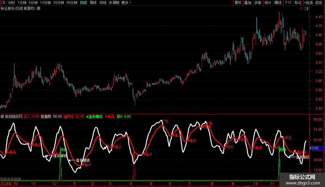 低买: REF(CROSS(短趋势,趋势线),0.7) AND 短趋势>0.95*趋势线;