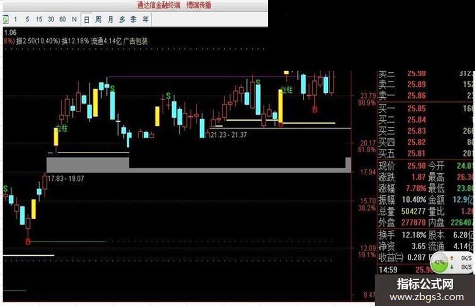 通达信BS点+撑力阻力+倍量画线+立桩量主图指标公式
