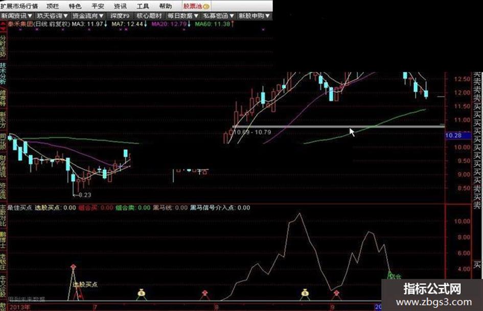 DRAWTEXT(黑码信号介入点>0,4.5,'●我的黑码介入点'), , COLORRED;