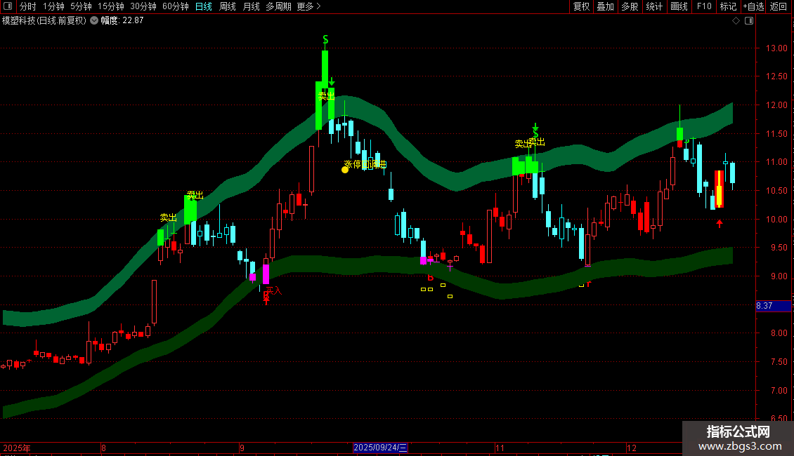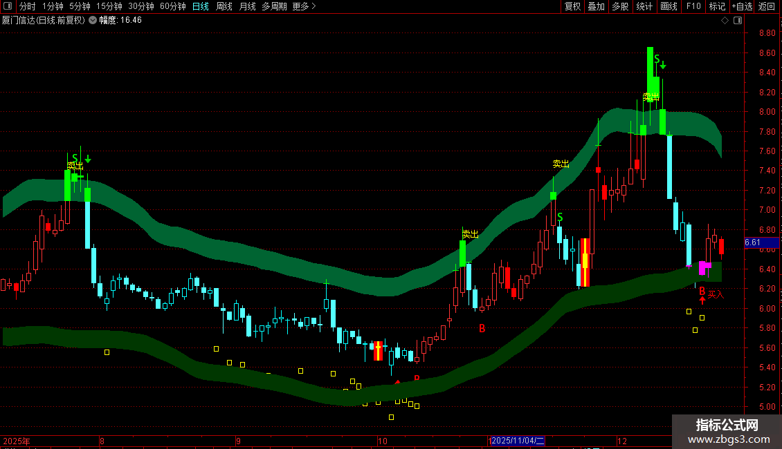 DRAWBAND(卖出,RGB(200,50,55),卖出*1.03,RGB(0,100,50));