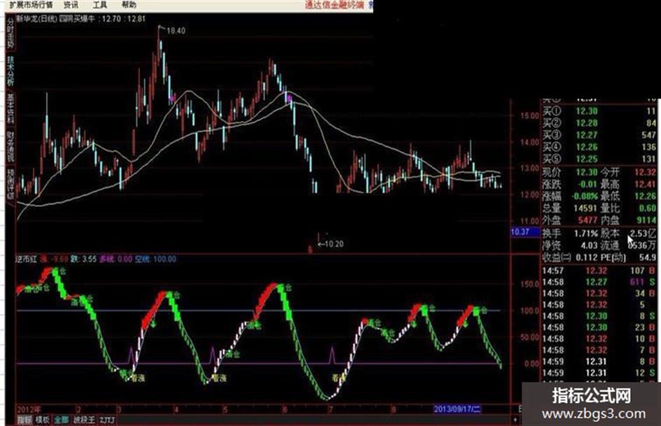 涨:EMA(QW6,10)+100/2-5,LINETHICK1,COLORRED;