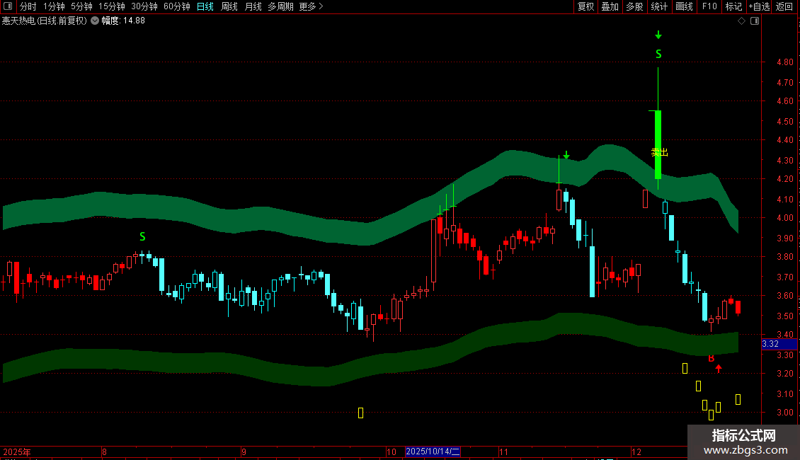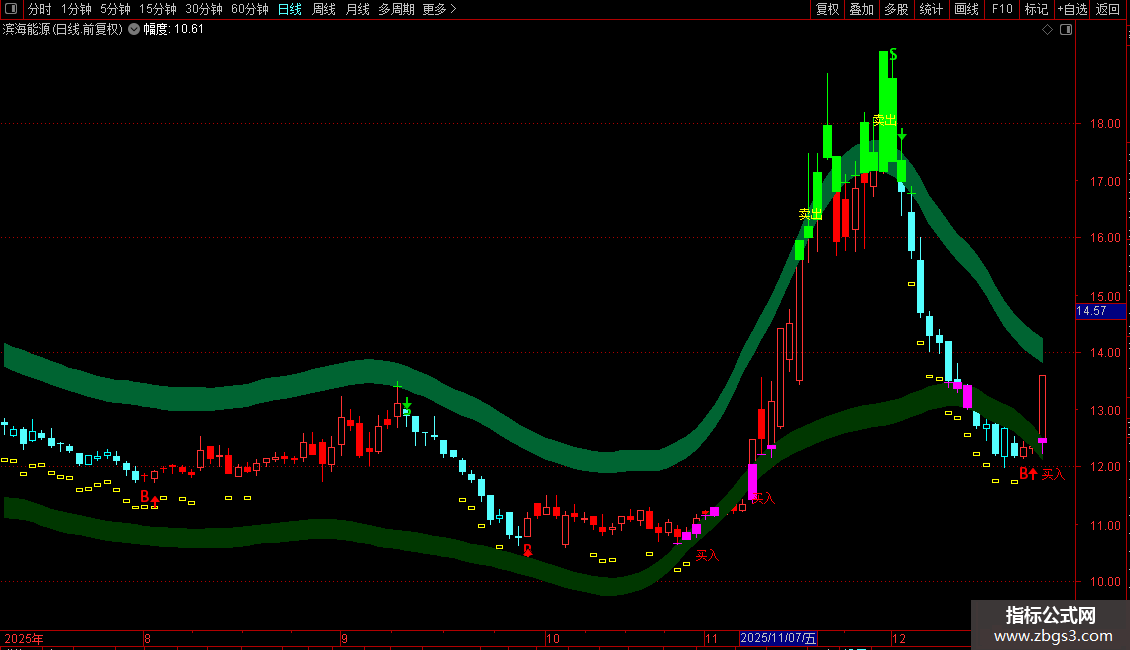 DRAWBAND(卖出,RGB(200,50,55),卖出*1.03,RGB(0,100,50));
