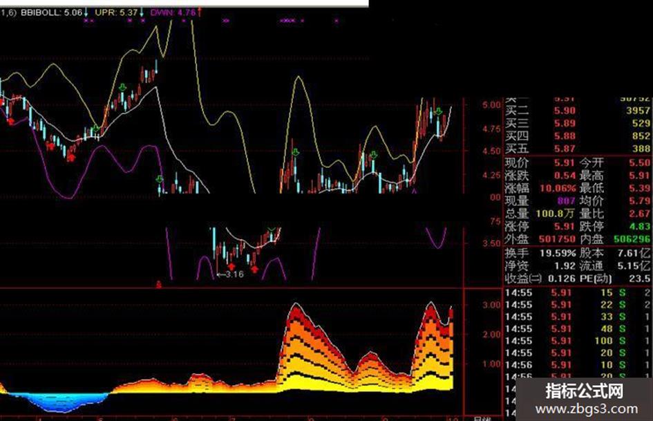 STICKLINE(买卖差<0,(卖线+买卖差*0.8),(卖线+买卖差*0.95),5,0) ,COLOR66FF00;