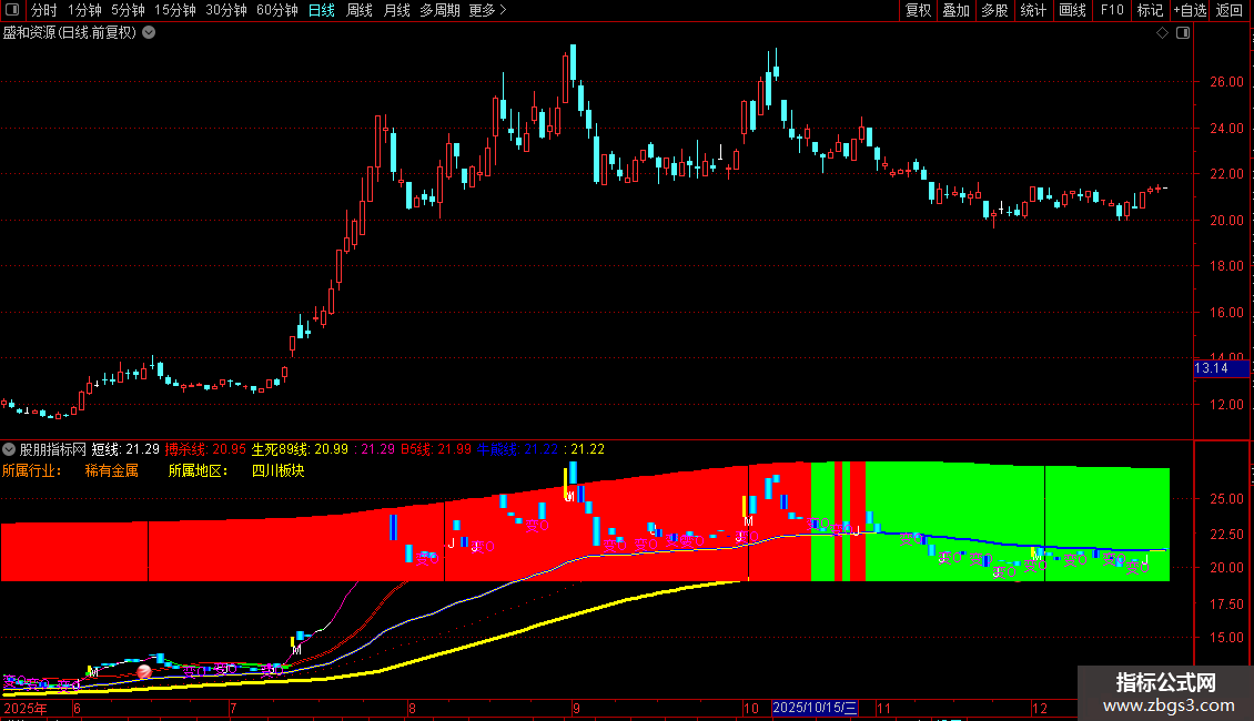 STICKLINE(搏杀线>生死89线 AND CROSS(短线,搏杀线),L,L*0.99,3,0),COLOR00FF00;