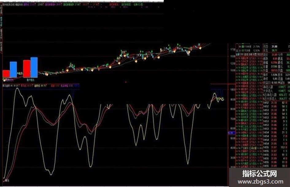 大势已去:IF(CROSS(黑马线,A1)AND 黑马线>70 AND 趋势线>80,90,100),COLORFF0000;