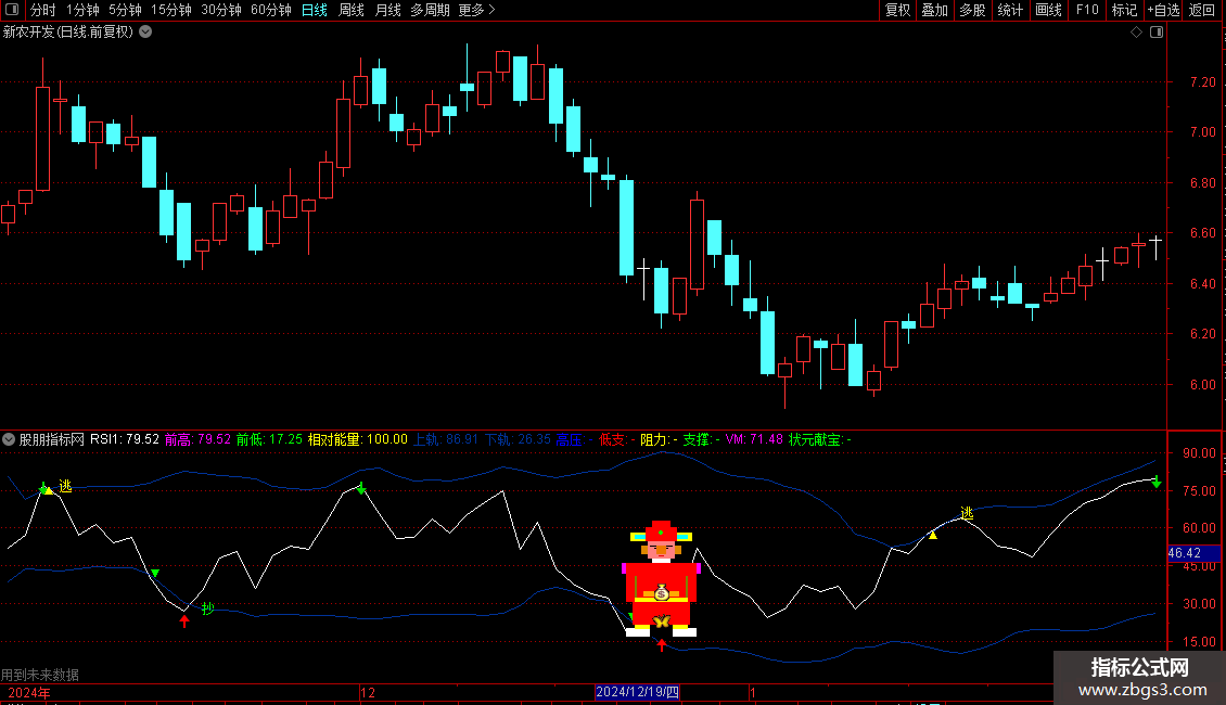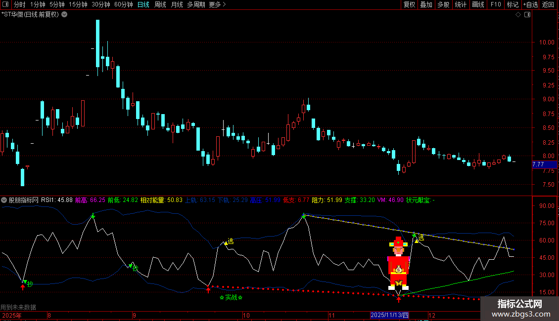 状元献宝:IF(状元郎,58,DRAWNULL),LINETHICK4,POINTDOT,COLORGREEN;