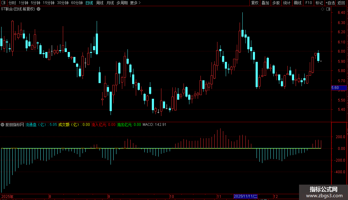 输出流通盘(亿):当前流通股本(手)/1000000,画淡蓝色