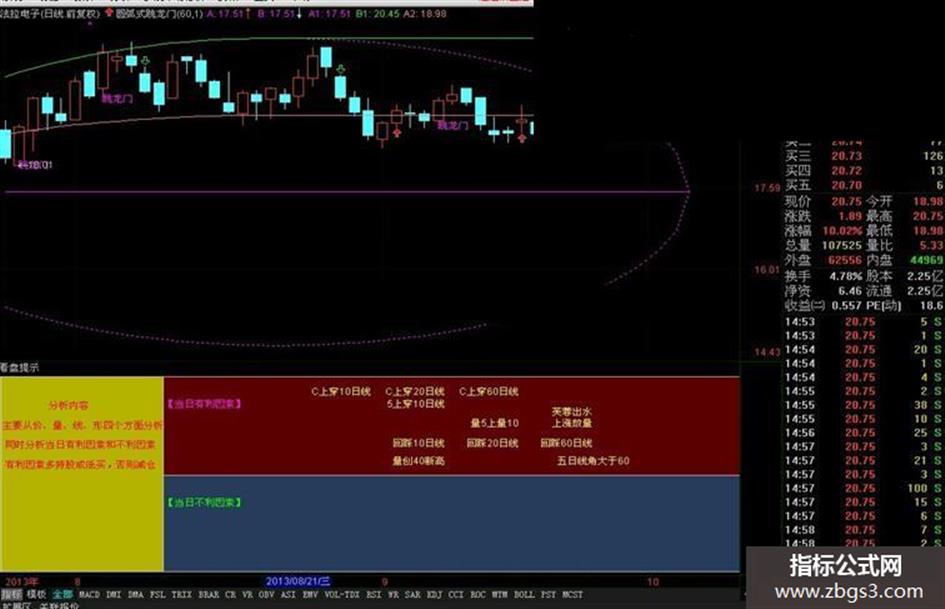 描述:主要从量、价、线、形四个方面分析当日有利因素和不利因素,为投资决策提供依据。
