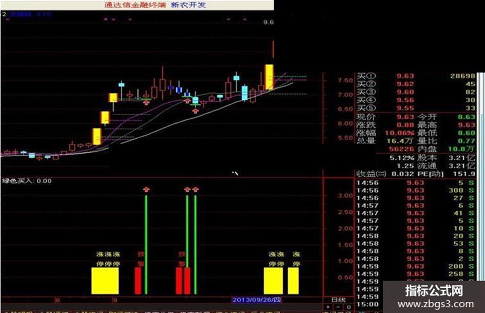 DRAWTEXT(涨停 AND HH,1.3,'涨'),COLORYELLOW;
