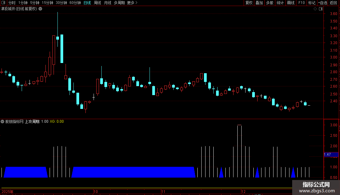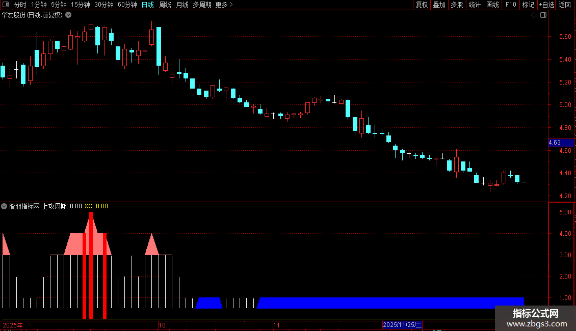 STICKLINE(COUNT(上攻周期>3,5)>=3 AND SG,0,上攻周期,1.5,0),COLORRED;