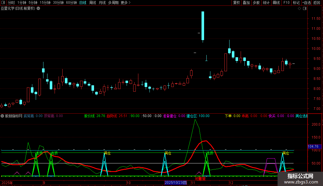 顶背离: IF((VAR26>90),17,0), COLOR6B238E,LINETHICK3;