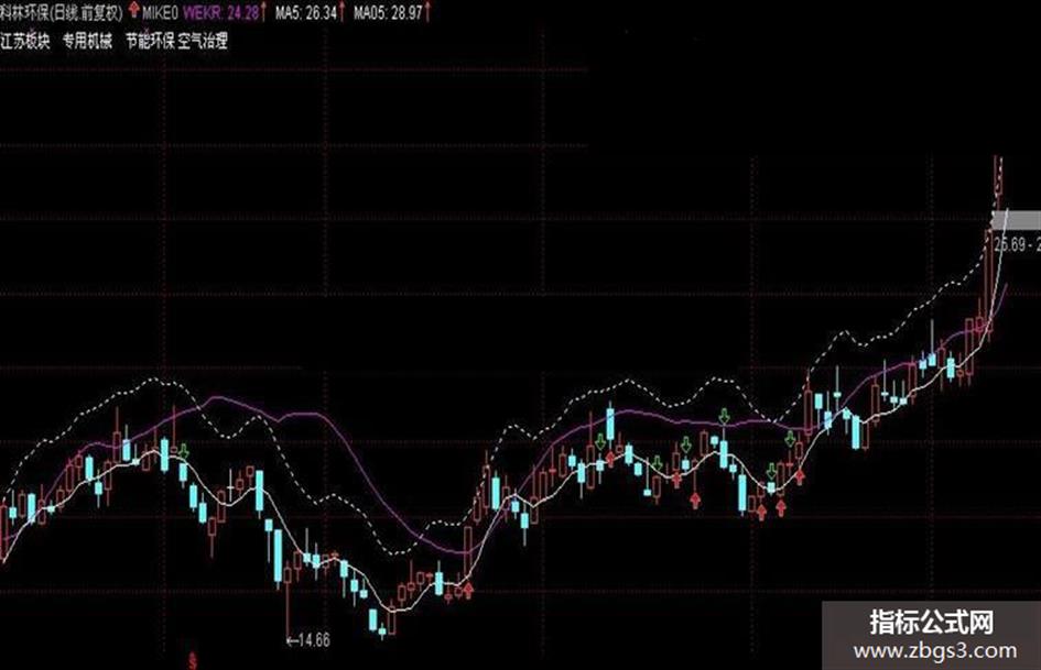 只有MIKE指标中的WEKR指标和5日简单移动平均线及其5日简单移动平均线的+10%三条线组成。