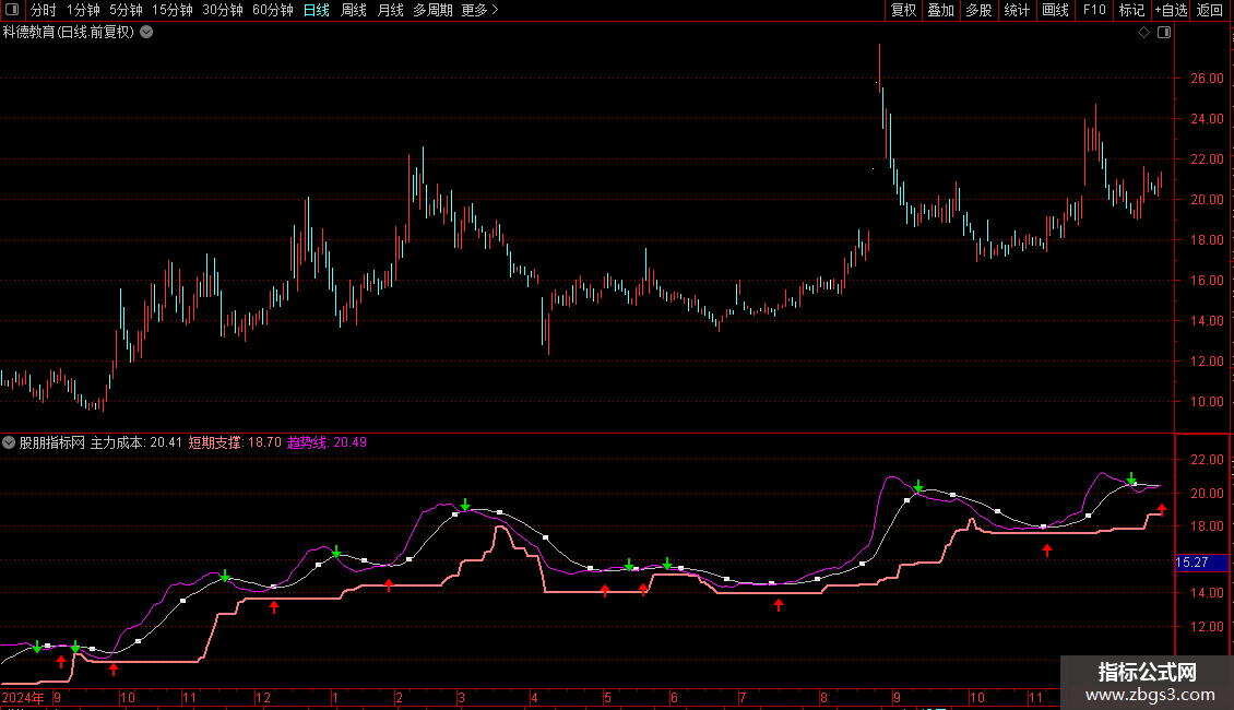 主力成本:=EMA(X,13),LINETHICK1,COLORLIGRAY;