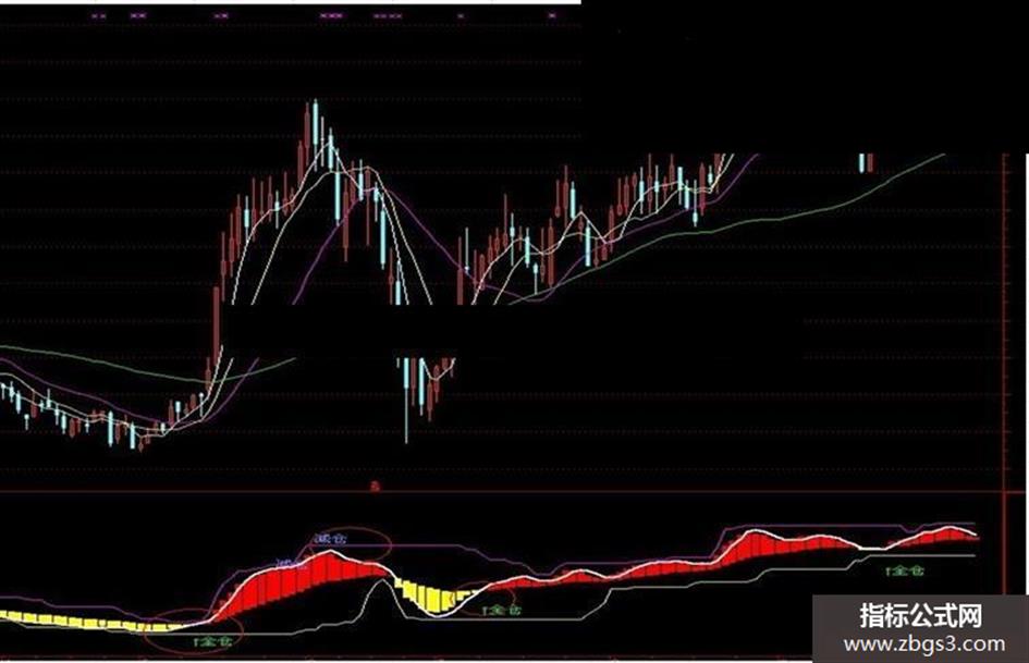 DRAWTEXT( CROSS(上线,下线),LOW *0.95,'↑全仓' ),COLOR00FF00;