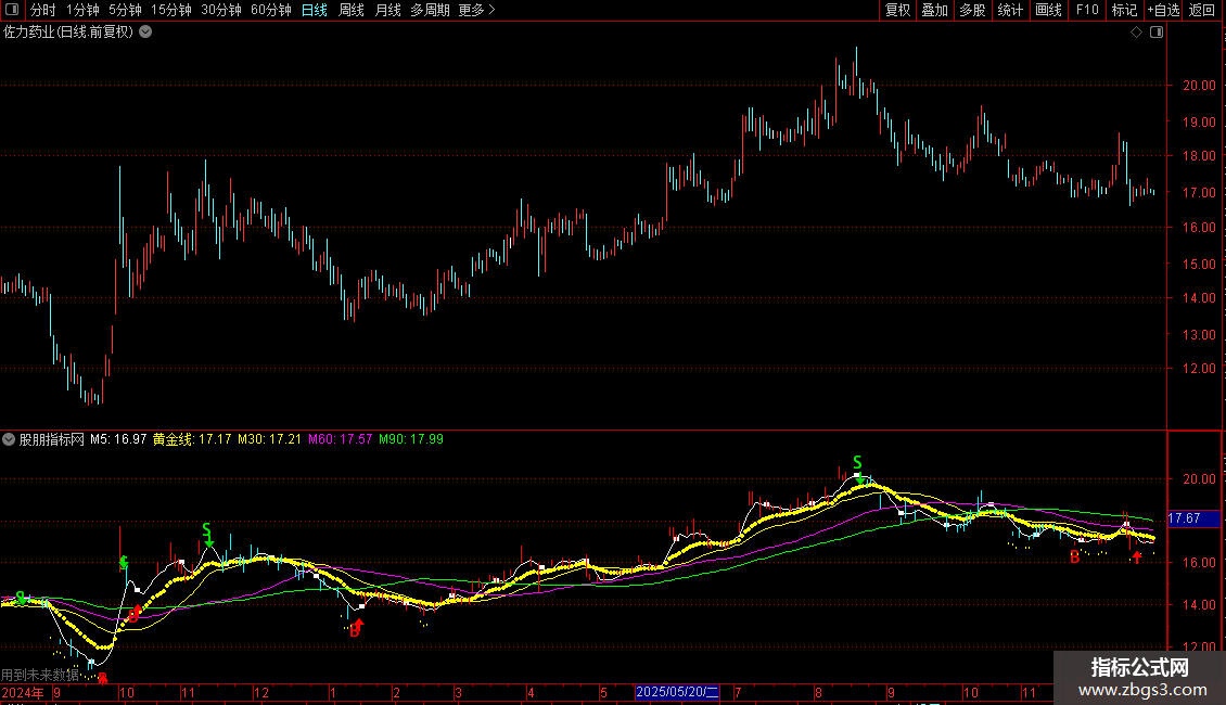 黄金线:EMA(C,18),POINTDOT,LINETHICK4,COLORYELLOW;