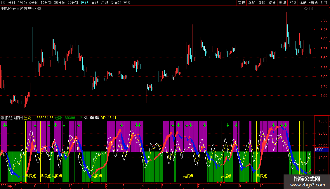 DRAWTEXT(CROSS(VAR4,VAR5) AND CROSS(KK,DD),10,'共振点'),COLOR00FFFF;