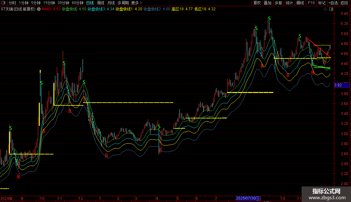 短期压力:DRAWLINE(S2,H,S1,H,1),LINETHICK2,COLORRED;