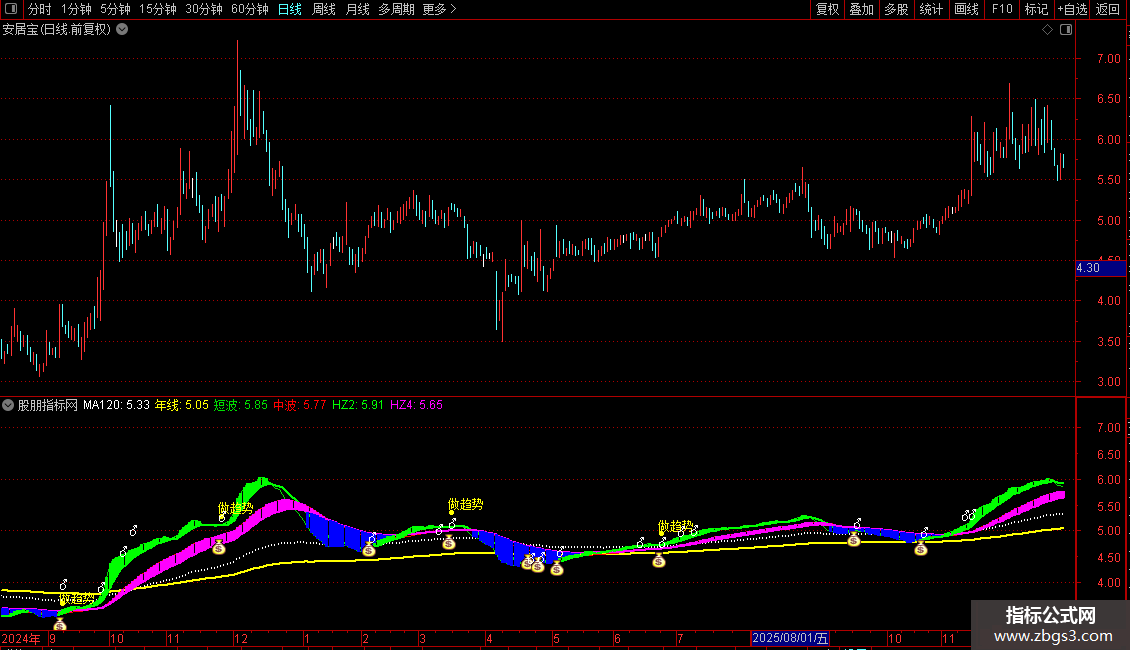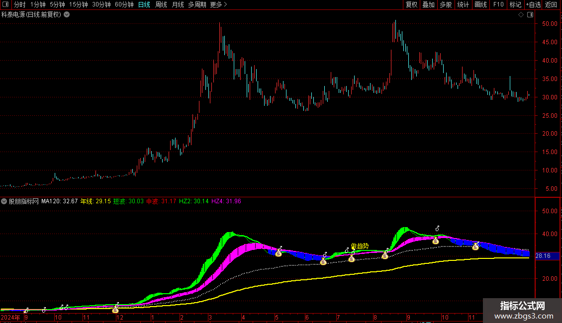 短波:EMA(HZ,1),COLOR00DD00,LINETHICK1;