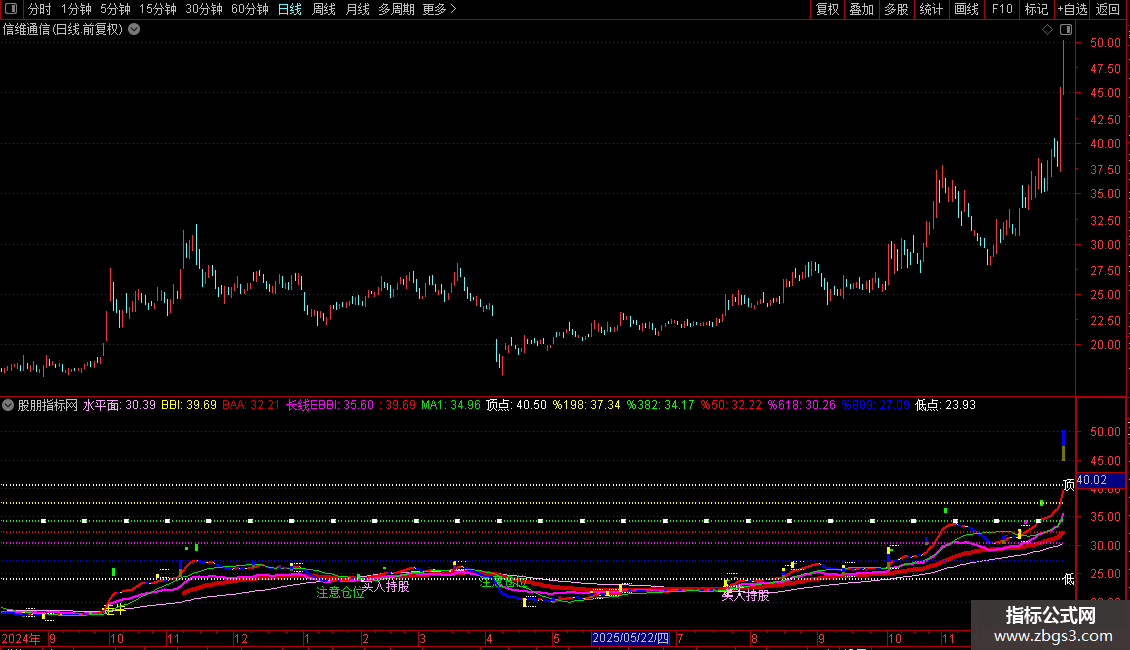 DRAWTEXT(CROSS(BBI,BAA),L-1.0,'买入持股') ,COLORFFA2FF,LINETHICK3;