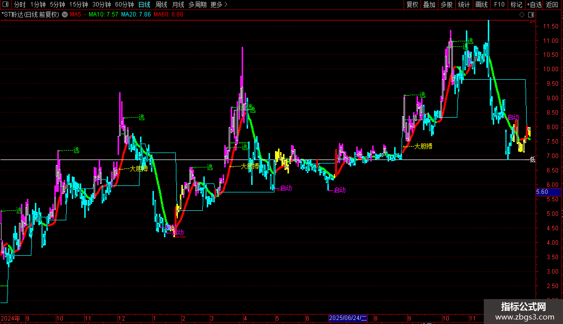 DRAWTEXT(CROSS(VAR52,VAR51), LOW,'←启动')COLORMAGENTA;