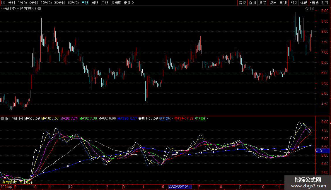 中期升:IF(REF(MA30,1)<MA30,MA30,DRAWNULL),COLORRED;